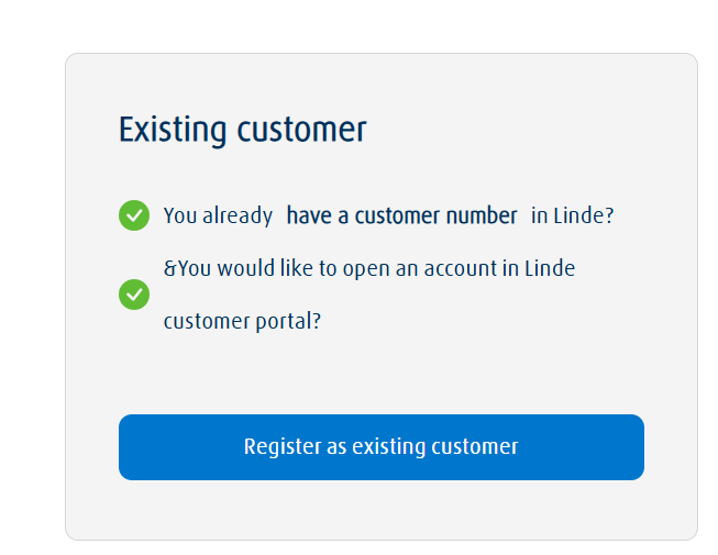 If you are already Linde customer and have a customer number, you can create Customer portal account by