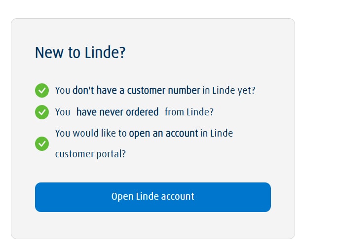 If you are a new in Linde, you will first need to register as a Linde customer in order to get a customer